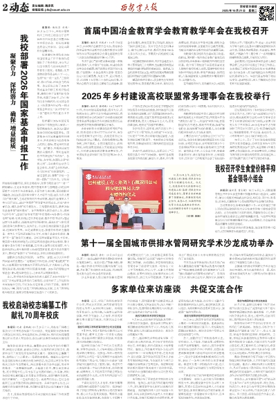 本报讯(通讯员 刘礼才)10月17日至19日,由中国冶金教育学会主办,我校承办的首届中国冶金教育学会教育教学年会暨2025年中国冶金教育学会第七届理事会第二次会议在我校意诚科创中心召开。